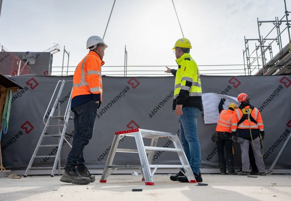 So sieht Wissenstransfer in der Baubranche praktisch aus: Die Unternehmensgruppe Brüninghoff, die selbst als Generalübernehmer und -unternehmer tätig ist, coacht derzeit die Stuttgarter Gottlob Rommel GmbH & Co. KG in der Montage von Holzbauelementen. Diese erweitert ihre Eigenleistungskompetenz im Geschäftsfeld Holz- und Holz-Hybridbau. Die Schulung von gewerblichen Mitarbeiterinnen und Mitarbeiter in der Montage und Aufrichten der Holzbauelemente findet im Rahmen eines Neubauprojektes von vier Mehrfamilienwohnhäuser in Holz-Hybridbauweise statt, für die Brüninghoff Wand- und Deckenelemente aus Holz fertigt. Brüninghoff zählt zu den führenden Partnern für Bauunternehmen in der Produktion hybrider Bauelemente.