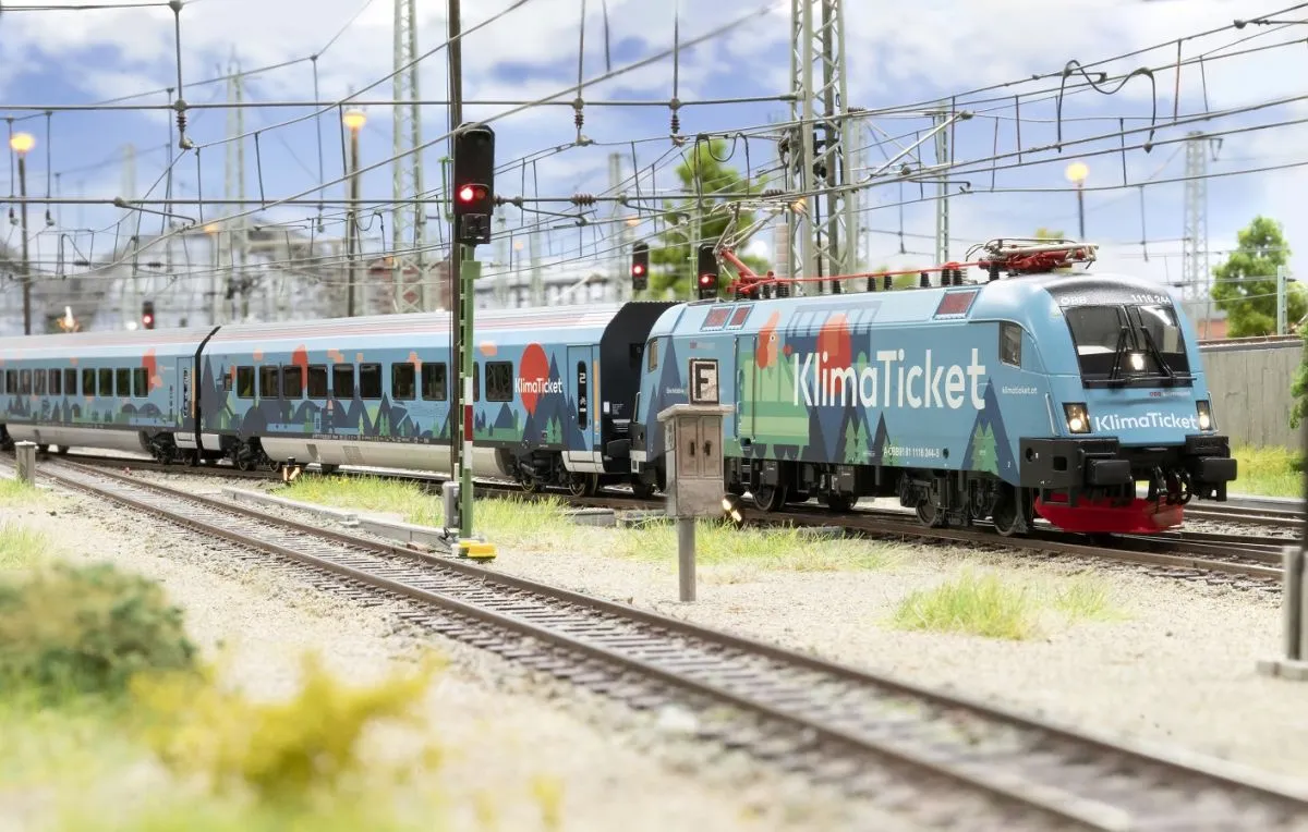 ROCO hat den "Klimajet" der ÖBB im modernen Design des "KlimaTickets" für alle Modellbahnfreunde in der Spur H0 umgesetzt. "Das KlimaTicket ist eine Revolution im Öffentlichen Verkehr in Österreich. Ein Ticket für alle Öffis - so bequem, so einfach und so günstig wie nie zuvor. Und mit dem Klimajet der ÖBB fährt diese Botschaft seit letztem Oktober auch durch unser ganzes Land - das freut mich besonders", sagt Klimaschutzministerin Leonore Gewessler. Seit Einführung des "KlimaTickets" rollt dieses tonnenschwere "Testimonial" bereits auf Schiene, um die Aktion in Österreich und im benachbarten Ausland zu bewerben.