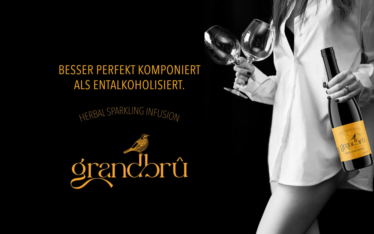 Mit der ersten Komposition haben wir auf die leichte, florale Note der Bio-Kamillenblüte gesetzt. Diese Note bekommt – mit der feinen Säure von Zitrussäften und dem Aufguss von Walnüssen – ihren bewusst an die Komplexität von Weinen oder Sekten angelehnten vollen Körper. Die leichte Kräutersüße hält dabei die Säure als Ausgleich in der Balance und bildet einen runden Abschluss. Im Gegensatz zu vielen rein fruchtbasierten alkoholfreien Getränken hat Grandbrû keine einfältige Süße, sondern überzeugt durch die feinen Tannine im Abgang mit einem lang anhaltenden Mundgefühl.
