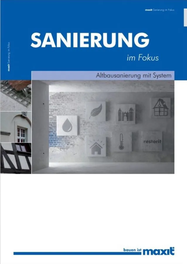 Im neuen 72-seitigen Handbuch "Sanierung im Fokus" finden sich die vielfältigen maxit restorit-Lösungsansätze für das Bauen im Bestand zusammengefasst wieder. Es enthält detailgenaue Abbildungen und Grafiken sowie ausführliche Beschreibungen, die Sanierungsprofis die tägliche Arbeit spürbar erleichtern. Erhältlich ist die Infoschrift direkt bei der Maxit-Gruppe - bestellbar per E-Mail (