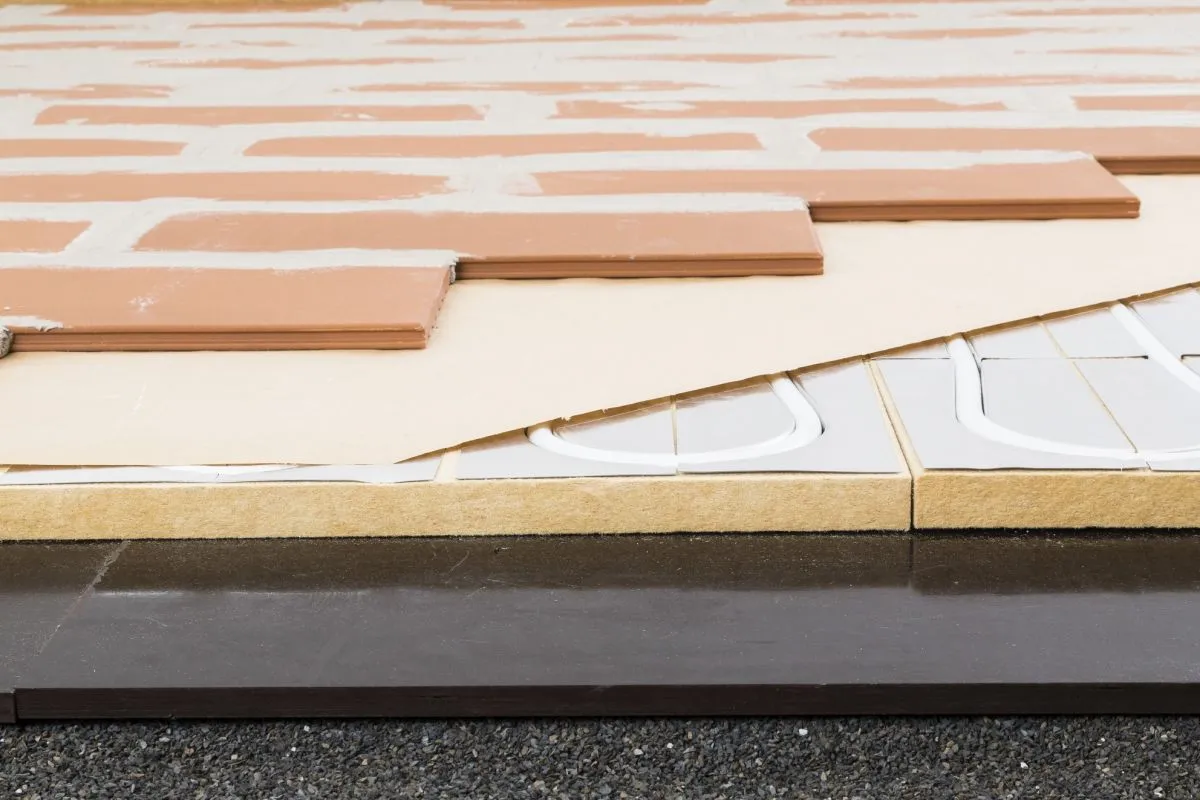 Bei stumpfen Stößen wie beispielsweise Türdurchgängen, bei Übergängen zu anderen Belägen oder bei Wechsel des Verlegebildes muss zusätzlich ein Blechstreifen von mindestens 0,8 Millimetern Dicke und einer Breite von 200 Millimetern unter den Estrichziegeln positioniert werden.