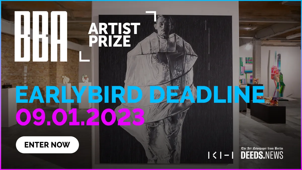 Die Bewerbungsphase für Berlins wichtigsten Kunstpreis ist wieder geöffnet. Der BBA-Artist Prize 2023 zeichnet internationale Künstler*innen unabhängig von ihrem Hintergrund mit mehreren Preisen aus, darunter eine Einzelausstellung, Geldpreise und vieles mehr. Der Wettbewerb umfasst eine exklusive Gruppenausstellung der in die engere Auswahl gekommenen Künstler*innen im Kühlhaus Berlin, einem der beliebtesten Veranstaltungsorte für Kunst und Kultur in der Hauptstadt, sowie ein Zeitungsinterview mit Deeds. Der BBA-Artist Prize hat sich als wichtiges Ereignis für die zeitgenössische Kunst in Berlin etabliert und ist Teil des Gallery Weekends.