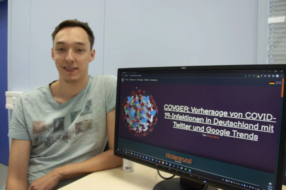 Besonders stolz ist Philip Storz darauf, die von ihm entwickelt Software im Rahmen seiner Masterthesis an der Fakultät Informatik weiter genutzt wird. So ist die von ihm geschaffene Internetplattform COVGER auch nach dem Ende seines Studiums weiter über den Server der Hochschule Reutlingen online verfügbar. "Durch meine Arbeit konnte ich ein System implementieren, welches die aktuellen Infektionszahlen im Livemodus vorhersagen kann. Dieses läuft auch in Zukunft automatisiert weiter und grundsätzlich wäre es sogar möglich es weiter zu entwickeln und eine Vorhersage von einigen Tagen zu realisieren, weil es eben nicht auf Testergebnissen basiert, sondern auf der Auswertung von kontinuierlichen digitalen Datenquellen wie Twitter und Google Trends."