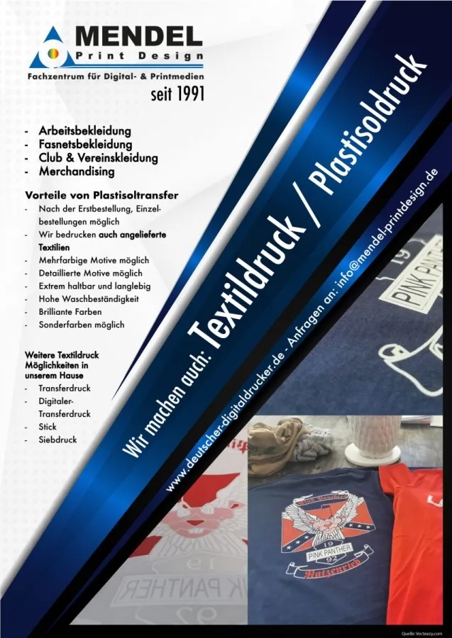 (openPR) Plastisoldruck für Ihre Arbeits-/ oder Vereinsbekleidung. Für Fasnetsbekleidung, Merchandising.