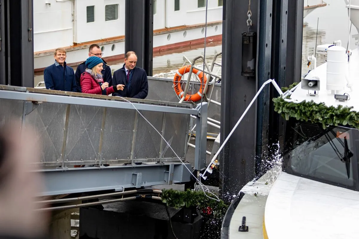 "Ich freue mich und es ist mir eine große Ehre, dass ich den "Inselexpress 1" taufen durfte", sagte Bettina Göschl. Als Norderin sei sie mit der Region und mit der Reederei Norden-Frisia persönlich und beruflich verbunden, beispielsweise durch Videoproduktionen an der Küste und auf den Inseln.