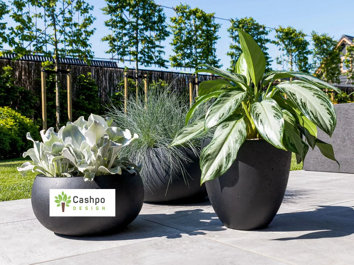 Cashpo Design bietet Pflanzgefäße in Anthrazit in verschiedenen Formen an: