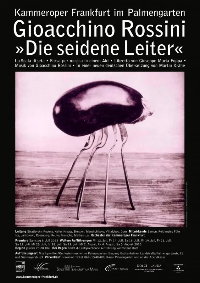 Die Kammeroper Frankfurt ist seit Jahrzehnten nicht nur bekannt für ihre amüsant-spielfreudigen Aufführungen berühmter Opern und Opere Buffe ("Komischer Opern") in deutscher Sprache, sondern auch für ihre enge Verbindung zu einem Komponisten: Rossini. Nach dem rauschenden Erfolg mit Rossinis "Glücklicher Täuschung" im letzten Jahr präsentiert die Kammeroper 2023 ein weiteres frühes komödiantisches Juwel Rossinis: "Die seidene Leiter".