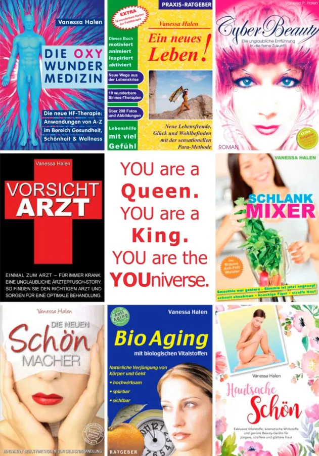 Weitere Informationen über die wahre Medizin und die wundervolle HF-Therapie, das YOUniverse Project sowie kostenlose Leseproben und Gratis eBooks, außergewöhnliche Tipps und Rezepte rund um die Themen Gesundheit, Schönheit und Wohlbefinden stellt die Autorin Vanessa Halen auf ihrer Homepage zur Verfügung: