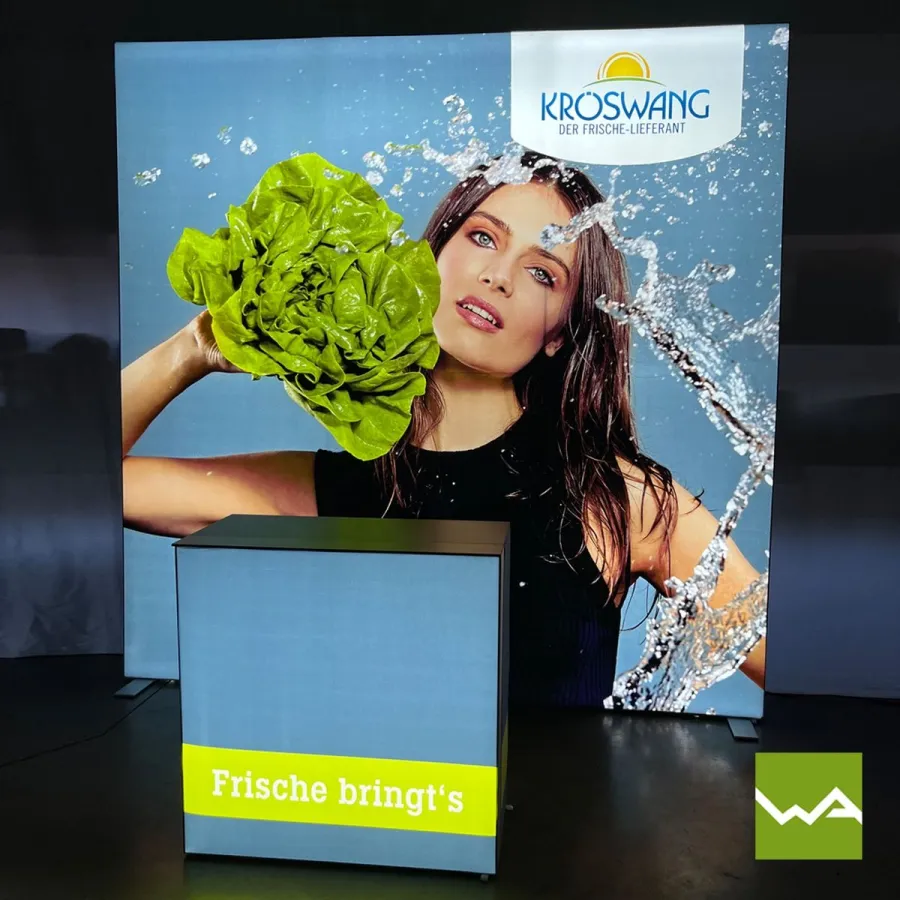 Ein großer Vorteil der Alu-Frame Messesysteme liegt in ihrer Modularität. Die Rahmen und bedruckten Stoffe können problemlos erweitert, ausgetauscht oder umgestaltet werden, um den Anforderungen verschiedener Veranstaltungen gerecht zu werden. Dadurch können Messestände in kurzer Zeit an neue Standorte oder Messekonzepte angepasst werden. Darüber hinaus sind Alu-Frame Messesysteme leicht und transportabel. Die Aluminiumprofile sind robust, aber dennoch leichtgewichtig, was den Transport und die Lagerung erleichtert. Die Stoffe können platzsparend zusammengefaltet werden, ohne dass sie ihre Qualität oder ihre faltenfreie Oberfläche beeinträchtigen.