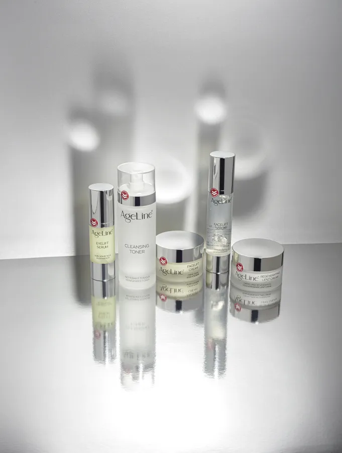 AgeLine® verbessert schon nach kurzer Zeit das Hautbild sichtbar und nachhaltig, was eine Universitätsstudie belegt hat. Alle Produkte sind ‚Made in Germany‘ und enthalten keine Duftstoffe, Parabene, Silikone oder Allergene. Somit sind sie für alle Hauttypen sehr gut verträglich (Dermatest).