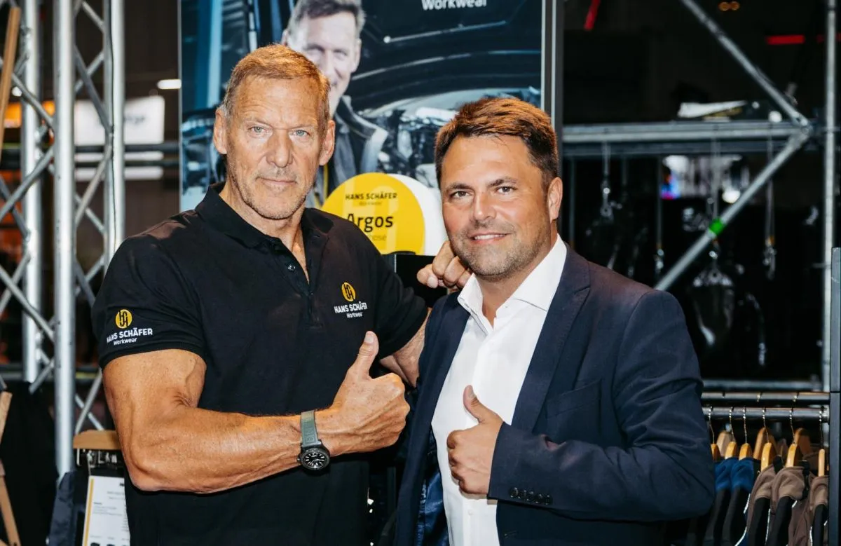 Düsseldorf 24.10.2023. Mit "Motivation Handwerk" startet der deutsche Schauspiel-Gladiator und Bodybuilding Ikone Ralf Moeller mit Hans Schäfer Workwear eine Initiative, um dem großen Fachkräftemangel im Handwerk entgegenzuwirken. Der Startschuss fiel bei der A+A in Düsseldorf, der Weltleitmesse für sicheres und gesundes Arbeiten. Die Initiative soll junge Leuten für handwerkliche Berufe motivieren und Zukunftsaussichten im Handwerk aufzeigen. Für Ralf Moeller, dessen Vater Schlosser war, ein wichtiges Anliegen, denn er engagiert sich schon seit 2008 im Rahmen der Kampagne "Starke Typen" der Bundesregierung für die Motivation von jungen Leuten und um sie für Karriere, Fitness und Gesundheit zu begeistern. Aktuell glänzt er in der ARD-Doku "Motorsägen Masters". Für "Motivation Handwerk" wird der Hollywood-Star Handwerker unterschiedliche Gewerke besuchen, um den spannenden und kreativen Arbeitsalltag im Handwerk zu zeigen. Der erste Termin steht schon am 27. Oktober 2023 mit den "Handwerkschwestern" Franzi & Elena Dangel. Die Klempnerinnen sind unter ihren Kollegen und in den sozialen Medien bereits kleine Stars. Aber nicht nur dass, Betriebe können sich auf der Website für eine "Motivation Handwerk" Aktion mit Ralf Moeller 2024 bewerben. Die drei Sieger, die persönlich besucht werden, kürt eine Fach-Jury.