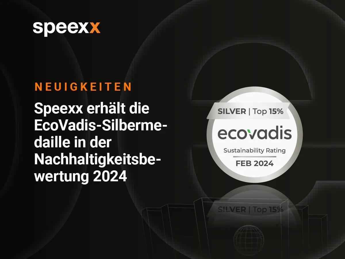 EcoVadis-Medaillen werden auf der Grundlage des Perzentil-Rankings eines Unternehmens in der Ecovadis-Datenbank vergeben. Silber wird an 15 % der Unternehmen vergeben, und Speexx liegt im 90. Perzentil und hat damit eine höhere Punktzahl als 90 % der von EcoVadis geprüften Unternehmen erhalten. Speexx gehört außerdem zu den besten 7% der bewerteten Unternehmen in seiner Branche. 2024 ist das vierte Jahr in Folge, in dem Speexx mit einer Silbermedaille ausgezeichnet wurde.