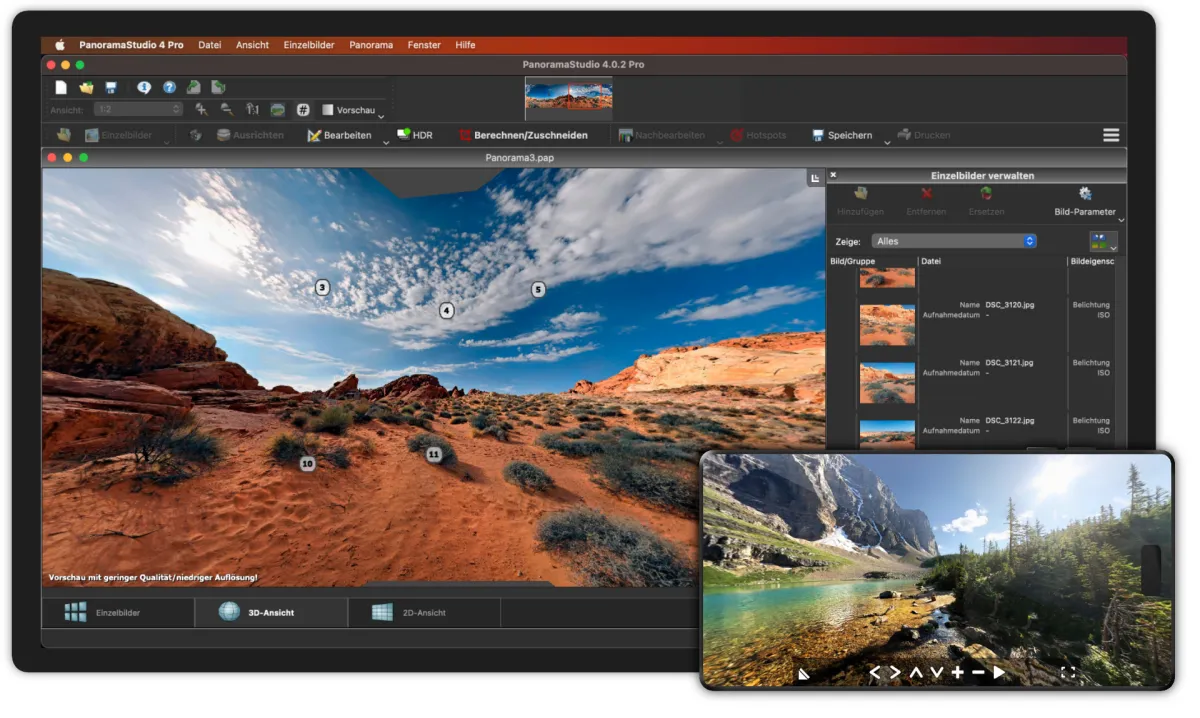 PanoramaStudio ist eine Rundum-Lösung für die Erstellung von Panoramabildern, interaktiven Panoramen und virtuellen Touren.
