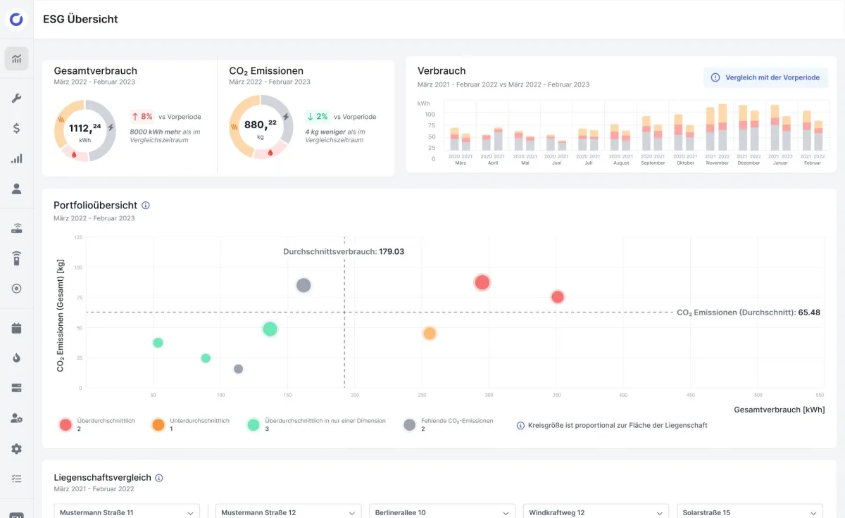 Aktuelle Branchenpraktiken umfassen mühsame Datensammlungen aus fragmentierten Quellen, die oft nur jährliche Werte mit erheblichen Verzögerungen liefern. Comgy löst dieses Problem durch die Integration mit diversen Messgeräten, Gateways, Protokollen und APIs, um eine digitale Infrastruktur aufzubauen. Dadurch werden alle Verbrauchsdaten eines Gebäudes (Strom, Wärme, Wasser) in einer zentralen Cloudlösung jederzeit abrufbar. Das Comgy-System ermöglicht automatische ESG-Reportings und unterstützt Dekarbonisierungsmaßnahmen wie Mieterstrom oder intelligente Heizungssteuerung. Auch regulatorische Anforderungen wie unterjährige Verbrauchsinformationen oder Heizkostenabrechnungen werden automatisiert abgebildet.