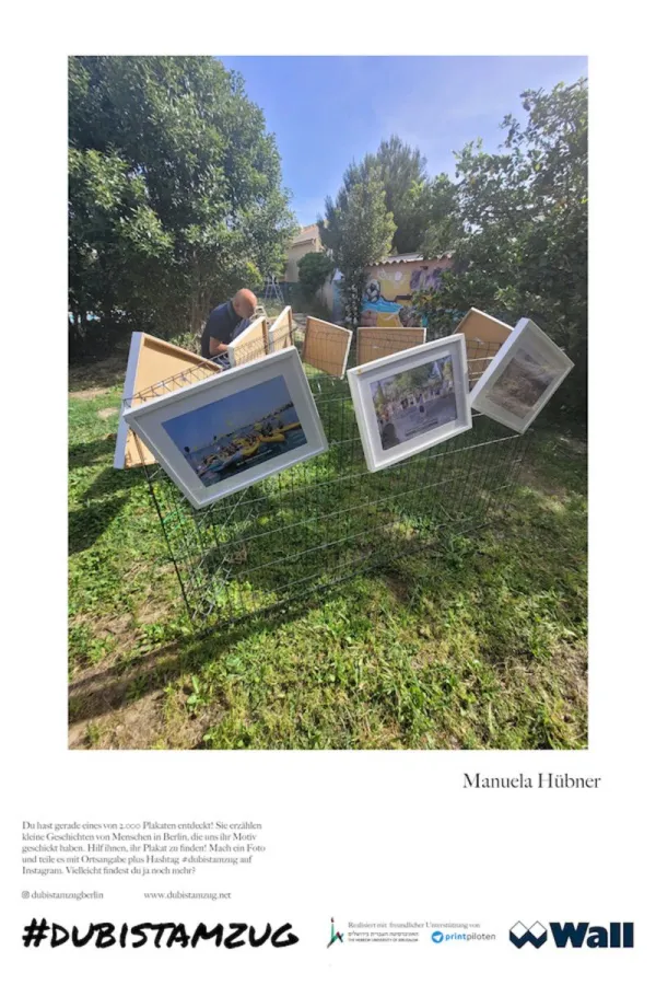 Berlin, 08. Juli 2024 | DU BIST AM ZUG, das Projekt, das im April Berliner*innen dazu aufrief, kreative Beiträge einzuschicken, zeigt diese ab dem 17. Juli 2024 auf den von der Wall GmbH gesponserten 2 000 City Light Poster-Werbeflächen in Berlin. Die genauen Standorte sind unbekannt. Alle Berliner*innen sind eingeladen, an der Plakatsuche teilzunehmen. Entdeckte Plakate sollen fotografiert und mit dem Standort in den sozialen Medien unter dem Hashtag #dubistamzug geteilt werden. So können alle Teilnehmer*innen ihr Plakat finden.