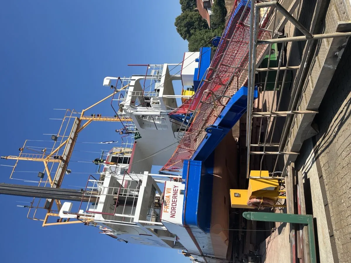 die Rußpartikelfilter erfüllen nun die strengsten Emissionsvorschriften. "Natürlich fährt die Frisia VII damit nicht CO₂-neutral, wie unser künftiger Elektrokatamaran, der 2025 in Betrieb geht", sagt Garrelts. Aber zum Verständnis der Reederei Norden-Frisia von nachhaltigem Handeln gehöre es auch, den Lebenszyklus von Anlagen und Schiffen möglichst lang zu gestalten. "Darum haben wir uns entschieden, die Frisia VII noch einmal umfassend zu ertüchtigen", so Garrelts.