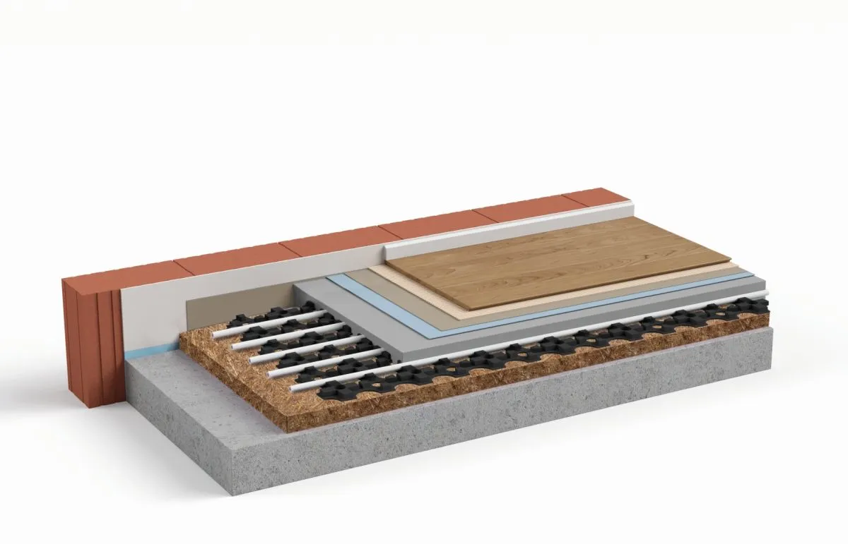 Die Verarbeitung erfolgt dabei in gewohnter Weise: So wird zunächst der Untergrund vorbereitet und eine Ausgleichsschicht ausgeführt, um Einbauten wie Rohrleitungen auf eine Höhe zu bringen. Im Anschluss erfolgt das Verlegen der neuen Trittschalldämmung auf die geschaffene ebene Oberfläche. Dabei müssen die leicht verlegbaren Platten vollflächig und dicht gestoßen auf dem Untergrund aufliegen. Ist eine Fußbodenheizung eingeplant, werden die Leitungsbahnen wie üblich auf die Strohfaserplatten verlegt. Erreicht der danach aufgetragene Estrich Belegreife, kann der Bodenbelag folgen. Das Ergebnis ist ein fachgerechter und nachhaltiger Bodenaufbau.