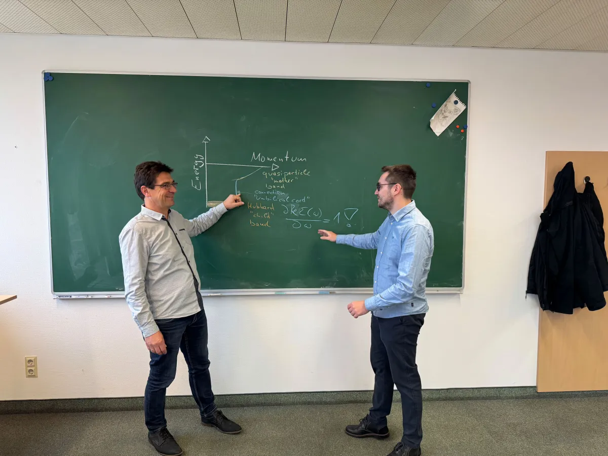 Wenn man diese Wechselwirkungs-Stärke kontinuierlich ändert, dann kann es passieren, dass aus einem erlaubten Energie-Bereich zwei getrennte erlaubte Energie-Bereiche werden. „In diesem Fall ist es besonders interessant, welche Struktur sich hier ergibt und welche möglichen Kombinationen von Energie und Impuls sich ergeben“, sagt Karsten Held.
