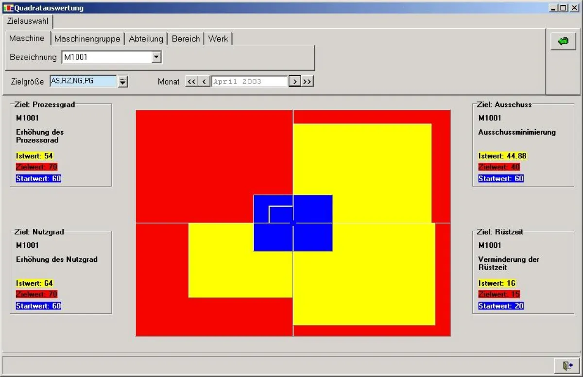 In der zweiten Stufe werden Ziele definiert, die es im Rahmen eines Verbesserungsprozesses zu erreichen gilt. Die Ziele orientieren sich an den Verbesserungspotenzialen, die in der ersten Stufe aufgedeckt wurden. Daraus werden Maßnahmen abgeleitet, die dazu dienen sollen, die vorgegebenen Ziele in den definierten Zeiträumen zu erreichen.