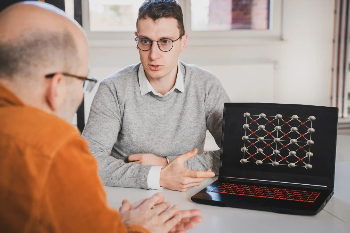 Die von Ganser genutzte Simulationsmethode „Molekulardynamik mit maschinellem Lernen” verwendet neuronale Netze, die mit atomar genauen Materialdaten trainiert werden. Erstmals sind damit zeitabhängige Simulationen von bis zu einer Million Atomen möglich – weit mehr als die bisherigen Hundert. Dies eröffnet detaillierte Einblicke in den Materialschaltprozess und bringt Simulation und Experiment näher zusammen. Die dafür erforderliche Datenbasis wird auf dem SuperMUC in Garching, einem der weltweit größten Supercomputer, berechnet.