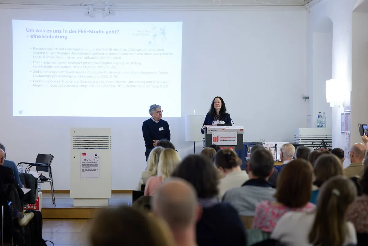 Ausgangspunkt für die Untersuchung bildete der auf Bundesebene im Achten Sozialgesetzbuch verankerte Rechtsanspruch auf Ganztagsbetreuung ab dem Schuljahr 2026/27. „Dieser Rechtsanspruch soll verbindlichen Zugang zu ganztägigen Betreuungsangeboten sichern, Fachwissen und Sozialkompetenzen fördern sowie Bildungsbarrieren abbauen“, erklärte Dr. Wiedenhorn. Es gebe zwar bereits wissenschaftliche Studien zur Ganztagsschule. Unklar geblieben sei aber bislang, was die Akteurinnen und Akteure selbst dazu sagen und wie Lehrpersonen und Fachkräfte die Auswirkungen des Ganztags auf Bildungsgerechtigkeit wahrnehmen. Gras und Wiedenhorn untersuchten daher wahrgenommene Effekte auf schulische Leistungen, soziale Kompetenzen und Teilhabe vulnerabler Gruppen und sie analysierten die Zusammenarbeit zwischen Schulen, Lehrpersonen und außerschulischen Partnern.