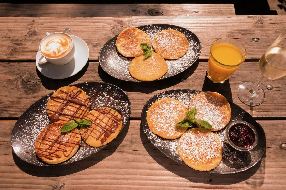 Liebhaber herzhafter Speisen können sich auf ofenfrische Brezel mit Butter, Frischkäse oder Obazda freuen, ein klassisches Weißwurstfrühstück "Zum Zuzeln" genießen oder zwischen verschiedenen Eiergerichten wie Rührei, Spiegelei oder Omelette wählen. Ein deftiges Bauernfrühstück namens "Tagwerk" und ein "zwergenleichter" Naturjoghurt mit Apfelspalten, Sauerkirschen und Granola runden das Angebot ab. Wer es süßer mag, kommt mit fluffigen Mini-Pfannkuchen auf seine Kosten, die je nach Vorliebe mit Puderzucker, warmen Sauerkirschen oder Schokoladen-Nuss-Creme serviert werden. Dazu gibt es eine große Auswahl an Kaffeespezialitäten, die auf Wunsch mit Hafermilch verfeinert werden können, sowie heiße Schokolade und edle Tees. Für alle, die den Tag stilvoll beginnen möchten, stehen zudem frisch gezapftes Weißbier, prickelnder Prosecco und erfrischende Säfte zur Auswahl. So kann der Tag starten.