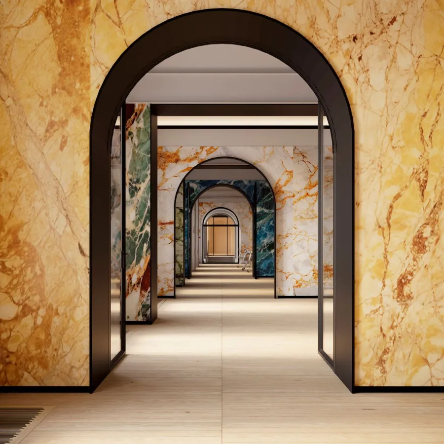 Eine besondere Herausforderung für das Team von Machine Learning Reply, das auf KI spezialisierte Unternehmen innerhalb der Reply Gruppe, und die Experten von ACPV ARCHITECTS bestand darin, großformatige Marmornachbildungen zu schaffen, die visuell konsistent sind und ihre natürliche Marmoroptik auch auf bis zu 3,2 Meter hohen Flächen ohne Verformungen bewahren.