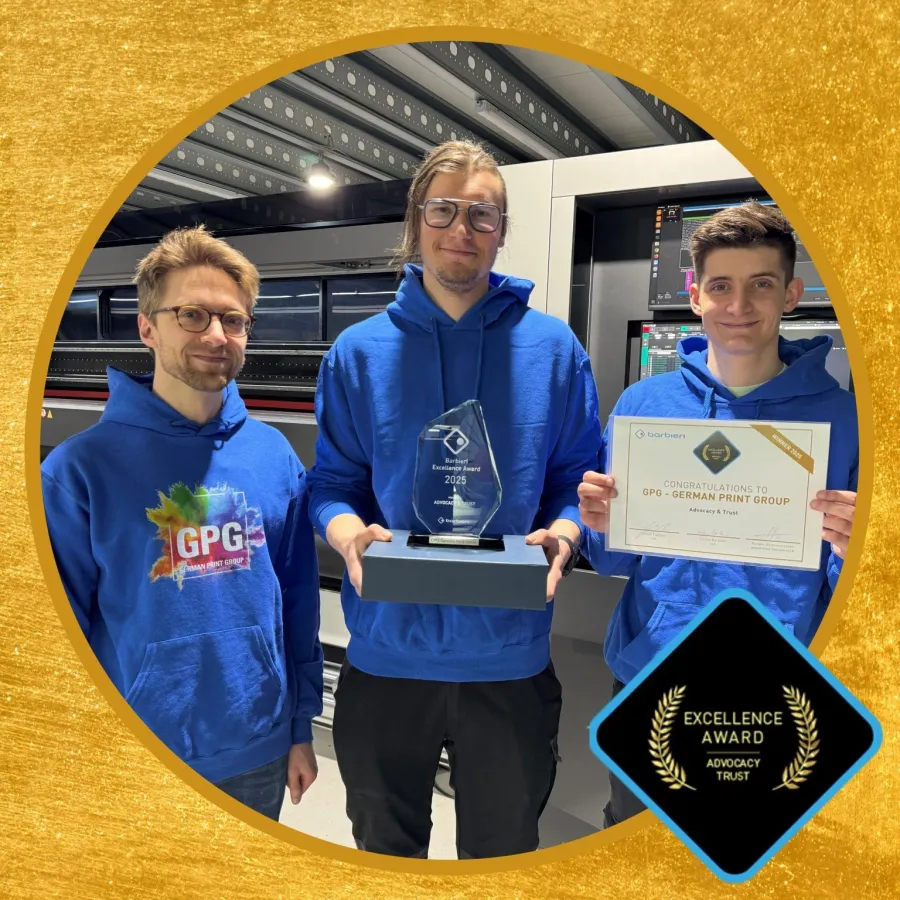 (openPR) Die GERMAN PRINT GROUP (GPG) wurde mit dem renommierten Barbieri Excellence Award in der Kategorie Advocacy and Trust ausgezeichnet. Mit dieser internationalen Ehrung würdigt Barbieri herausragende Unternehmen, die sich durch besonderes Vertrauen, Qualität und Innovationsgeist in der professionellen Digitaldruckbranche auszeichnen.