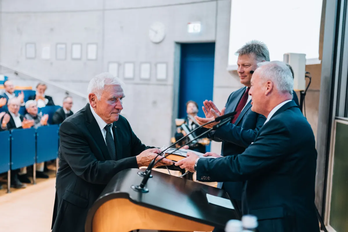 (openPR) Zum Jubiläum konnte die Hochschule zahlreiche Wegbegleiterinnen und Wegbegleiter, Vertreterinnen und Vertreter aus Politik und Wirtschaft sowie engagierte Stifterinnen und Stifter begrüßen. Im Rahmen der Feierlichkeiten verabschiedete sich Gert Wölfel, Gründungsmitglied und langjähriger Vorstandsvorsitzender der Stiftung, aus seinem Amt. Seine Nachfolge übernimmt Dr. Bernd Waffler, der bislang als stellvertretender Vorsitzender tätig war. Wölfel war ein Vierteljahrhundert Brückenbauer zwischen Hochschule und Wirtschaft, Studierenden und Förderinnen und Förderern. Prof. Dr. Ralph Schneider, Präsident der OTH Regensburg, würdigte in seiner Ansprache Wölfels unermüdliches Engagement: „Sie haben die Stiftung nicht nur mitgegründet, sondern auch mit Herzblut und Weitsicht geprägt. Dafür danke ich Ihnen im Namen der gesamten Hochschule von Herzen.“