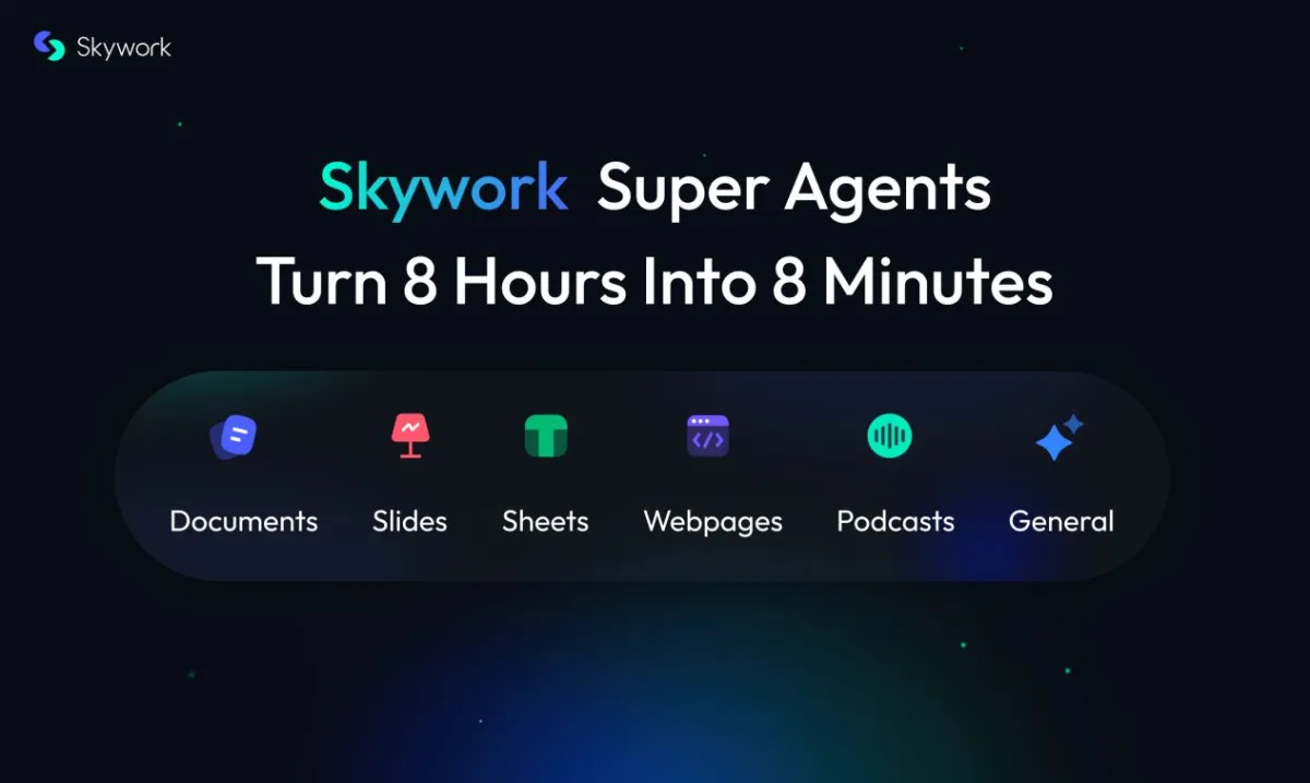Skywork.ai geht weit über traditionelle Office-Tools hinaus und bietet als weltweit erste Plattform fünf spezialisierte Agenten plus einen Universalagenten in einem System. Mit einem einzigen Befehl können Nutzer professionelle Dokumente, Datenblätter, Präsentationen, Podcasts und Webseiten generieren – alle mit derselben Deep-Research-Qualität und Nachverfolgbarkeit.