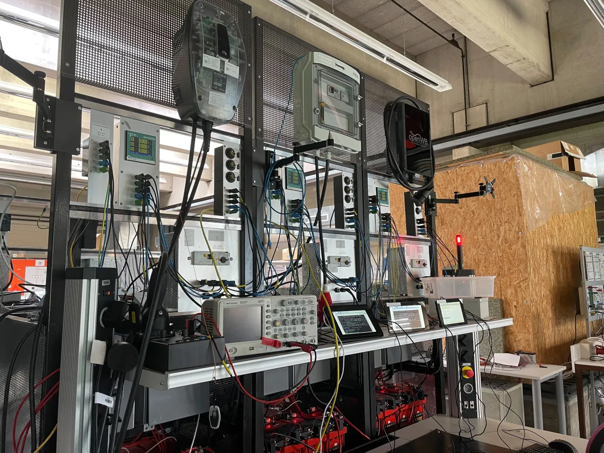 Um die Lösung zu erproben, entwarf das Projektteam im Labor ein Verteilnetz mit mehreren hundert Metern Kabeln sowie sechs simulierten Haushalten, die mittels elektrotechnischen Komponenten wie Wechselrichtern, Batterien sowie Mess- und Steuereinheiten nachgebildet wurden. Drei Racks waren mit einer Wallbox ausgerüstet. Die Steuerung des Systems übernahm ein Algorithmus, dessen grundlegende Funktionen im Vorgängerprojekt entwickelt wurden.