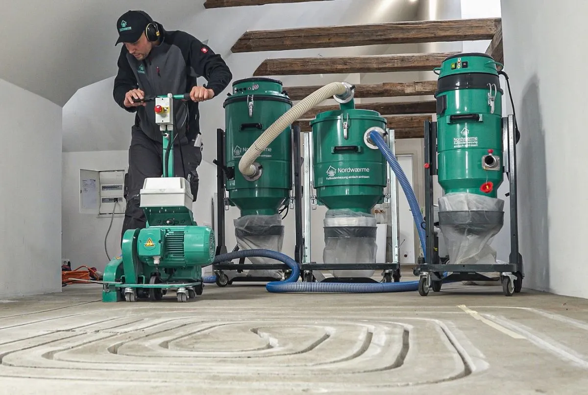 Fußbodenheizungen gelten als ideale Lösung für Niedertemperatur-Heizsysteme wie Wärmepumpen. Doch bisher war ihre Nachrüstung in Altbauten aufwändig, da der Estrich entfernt und der Bodenaufbau angepasst werden musste. Nordwaerme setzt hier auf eine bewährte Technik aus den Niederlanden: Mit modernen Fräsmaschinen werden die Heizkanäle direkt in den vorhandenen Estrich eingebracht - sauber, schnell und kosteneffizient.