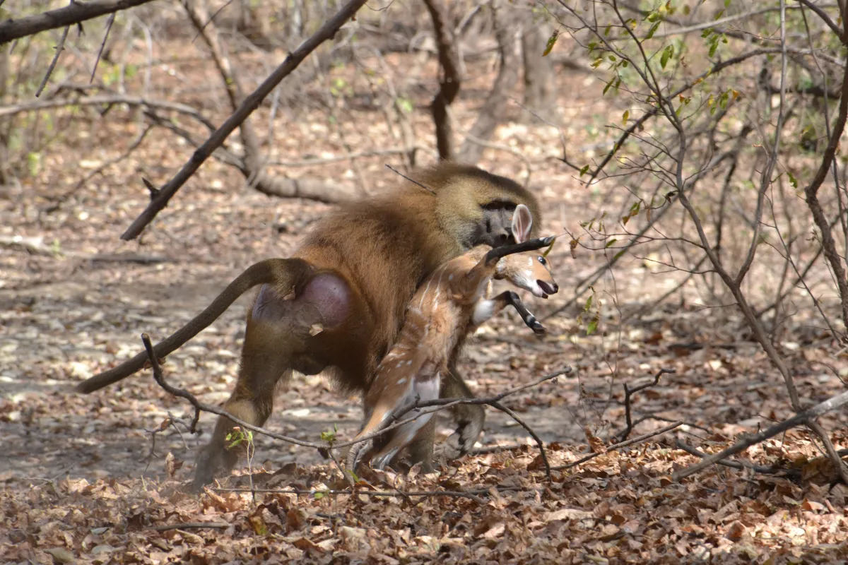 Die Wissenschaftler*innen analysierten an der DPZ-Freilandstation Simenti insgesamt 109 Ereignisse, in denen Fleisch auch von anderen Gruppenmitgliedern verspeist wurde, die die Beute selbst nicht getötet hatten. Dabei kam es insgesamt zu 320 Fleischtransfers. Beim Transfer der Beute spielt die Beziehungsqualität eine wichtige Rolle: Je enger zwei Tiere sozial verbunden waren, desto größer war die Chance, Fleisch zu erhalten. Besonders tolerante Übergaben, bei denen Tiere ohne Streit Fleischstücke nahmen („passive sharing“), traten fast ausschließlich innerhalb der eigenen Einheit auf. Weiter oben in der Hierarchie – zwischen verschiedenen Einheiten oder innerhalb der Gang – waren Transfers seltener und weniger tolerant.
