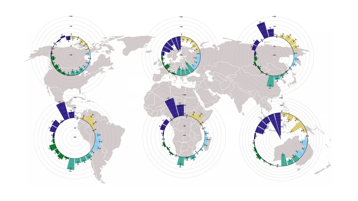 Bei der ökonomischen Bewertung gab es dagegen starke Unterschiede. In Nordamerika, Europa und Australien rechneten in etwa genauso viele Expertinnen und Experten mit positiven wie mit negativen Auswirkungen auf das Einkommen der landwirtschaftlichen Betriebe – zumindest kurzfristig. In Asien, Afrika und Südamerika sahen die Befragten in der Umstellung dagegen eher auch eine ökonomische Chance. Auch beim lokalen Zugang zu sicheren Lebensmitteln erwarten Befragte dieser Kontinente von einer Umstellung viel stärkere positive Impulse als solche aus Nordamerika, Europa und Australien.