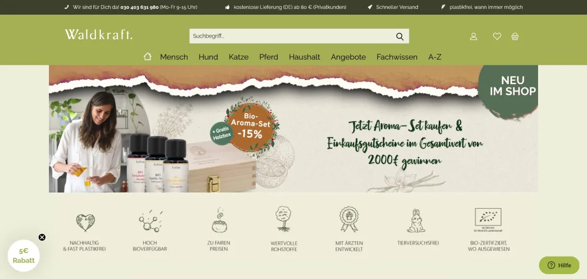 (openPR) Im stetig wachsenden Markt der Naturheilkunde hat sich Waldkraft als eine vertrauenswürdige Adresse etabliert. Der Online-Shop bietet ein umfangreiches Sortiment an natürlichen Gesundheitsprodukten, die sich sowohl an Menschen als auch an Tiere richten. Von klassischen Kräuterauszügen bis hin zu speziellen mineralischen Ergänzungen deckt Waldkraft ein breites Spektrum der Naturheilkunde ab. Dieser Artikel gibt einen Überblick über das Unternehmen, sein Produktportfolio und wie Kunden von einem dauerhaften Rabatt profitieren können.