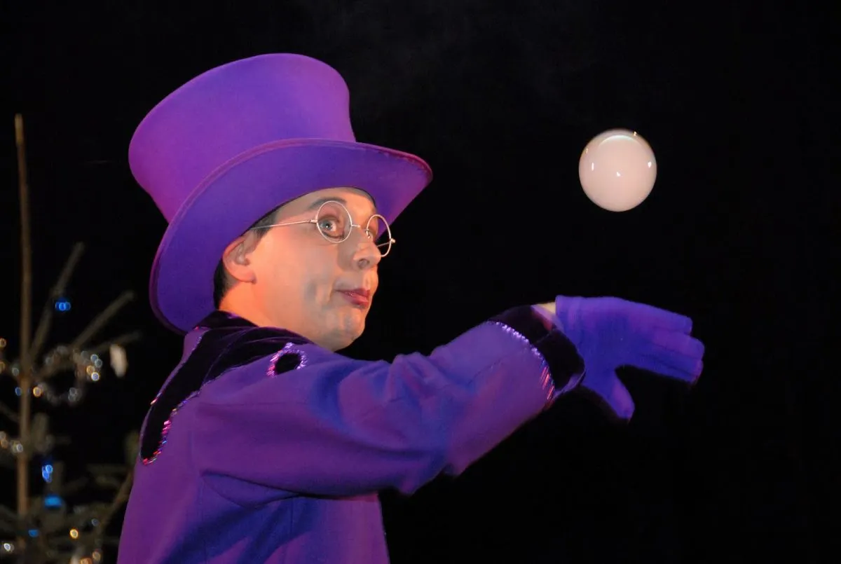 Im Anschluss begab sich das Publikum in den festlich vorbereiteten Saal des Hotels Ratswaage, wo der Geschäftsführer der Plabis Ingenieursgesellschaft die Mitarbeitenden mit einer kurzen Rede herzlich begrüßte. Er blickte auf das vergangene Jahr zurück und würdigte das Engagement der Teams. Diese Ansprache leitete über zum nächsten Showact der Unterhaltungskünstler und bereitete den Auftakt für den besinnlichen Teil der Weihnachtsfeier. Denn nun betrat Blub die Bühne und präsentierte seine Seifenblasenshow, die thematisch an Weihnachten anknüpfte. Große, schillernde Seifenblasen schwebten durch den Raum, fingen das Licht ein und erinnerten in ihrer Form und Farbigkeit an Weihnachtskugeln. Die Blasen veränderten sich, verschmolzen miteinander oder platzten lautlos und erzeugten eine märchenhafte Stimmung. Der Künstler selbst erschien wie aus einem Märchen entsprungen in lila Outfit mit großem lila Zylinder. Als Künstler setzte Blub für Weihnachtsfeier hier bewusst auf Leichtigkeit und poetische Bilder. Ein Video der Seifenblasenshow und weitere Informationen zur Buchung der Künstler für Weihnachtsfeiern ist unter https://www.blubshow.de/kuenstler-fuer-weihnachtsfeier zu finden. Der Seifenblasenkünstler formte Türme aus aufeinandergestapelten Kugeln und sogar mit Nebel gefüllte Seifenblasen. Die Gäste verfolgten diese Showeinlage sichtlich amüsiert und fühlten sich wieder in die Kindheit versetzt. Gerade diese Form der Unterhaltung zeigte, wie eine Showeinlage auf einer Weihnachtsfeier auch ohne Worte starke emotionale Bilder erzeugen kann. Die vergängliche Schönheit der Seifenblasen hinterließ einen nachhaltigen Eindruck.