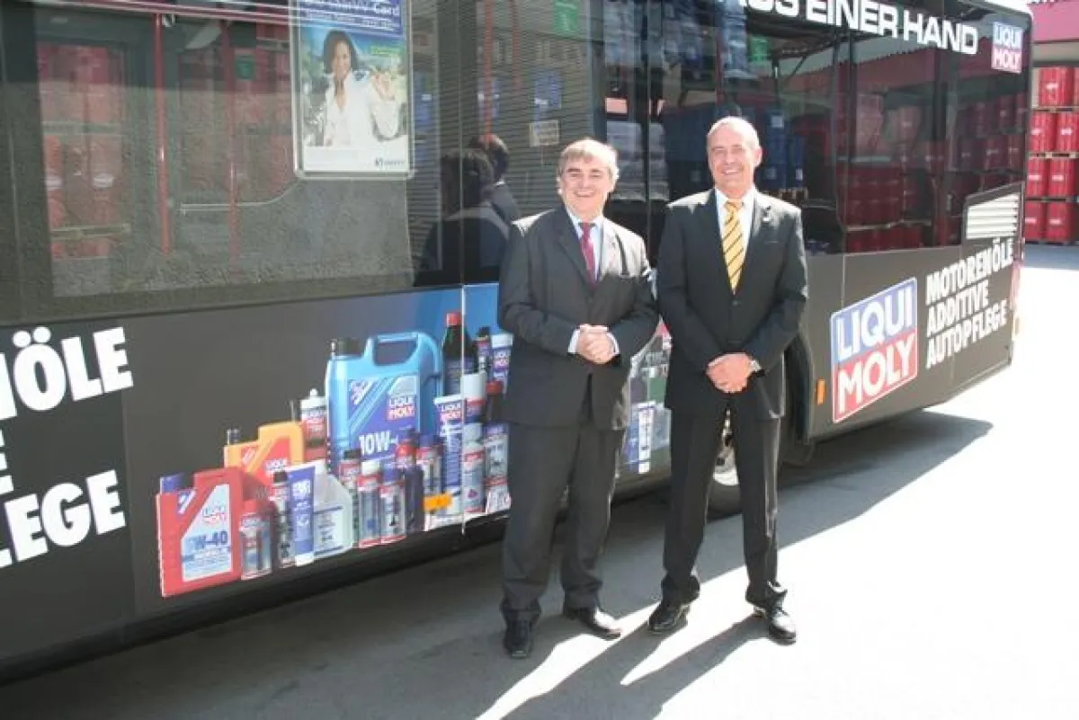 Der Besuch des Ministerpräsidenten war zudem gelungener Anlass, den Stadtwerken Saarlouis öffentlich einen Stadtbus mit LIQUI MOLY- Werbeaufschrift zu übergeben. Insgesamt werden sechs Stadtbusse in Saarlouis und Saarbrücken täglich ihre Runden drehen.