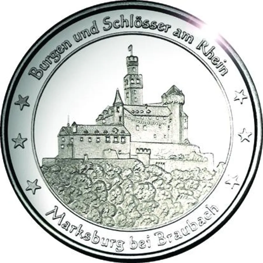 Wer ein Stück Marksburg mit nachhause nehmen möchte, kann auf der Burg einen Rheintaler mit dem Motiv „Marksburg über Braubach“ erwerben. Der Erlös kommt der Erhaltung der Burg zugute. Der Kaufpreis von 12,90 Euro ist gut angelegt, denn zwischen Köln und Speyer gibt es bei derzeit 50 Partnern des Vereins Rheintal e.V., darunter auch die Köln-Düsseldorfer Schiffahrtsgesellschaft, viele Museen und touristische Institutionen, Preisnachlässe bis zu 20% auf die Fahrkarten bzw. Eintrittspreise. Mit dem Taler ist der Eintritt in die Burg verbilligt. Erhältlich sind die Taler auch im Tourismusbüro der Stadt Braubach