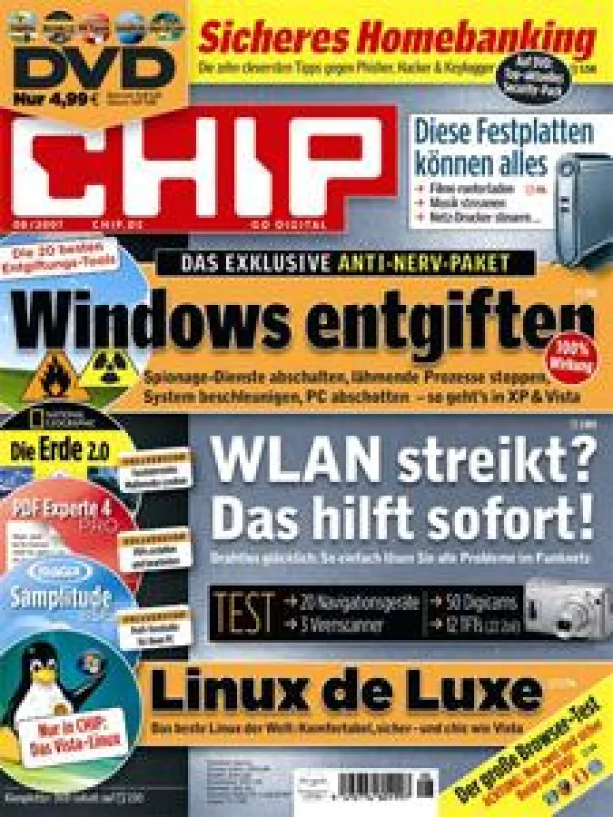 Der komplette Artikel erscheint in der aktuellen CHIP 08/2007, die am 6. Juli in den Handel kommt. Den Heft-Versionen mit DVD bzw. CD liegen eine umfangreiche Tool-Sammlung mit Sicherheits-Software sowie weitere hochwertige Programme bei.