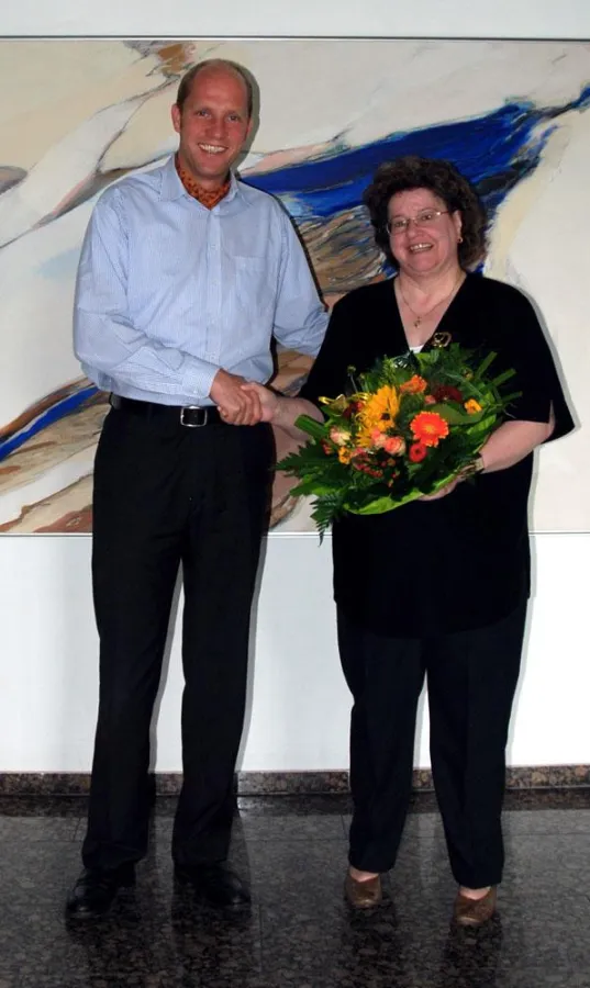 (openPR) Lüdenscheid, 12.07.07 - Seit 25 Jahren ist Ursula Klein (rechts im Bild) der Firma Assmann Electronic GmbH treu. Zu den Gratulanten gehörten Geschäftsführer Florian Assmann sowie die gesamte Belegschaft.