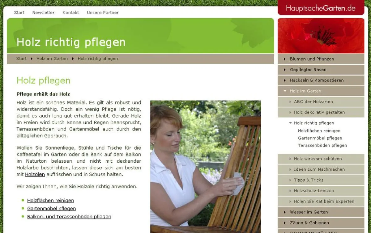(openPR) Vermoostes und vergrautes Holz muss nicht sein. Wer den Sommer im Freien richtig genießen möchte, sollte jetzt seine Gartenmöbel in Schuss bringen. Wie sie Ihre Stühle, Tische und Bänke vom tristen Wintergrau befreien, erfahren Balkonbesitzer und Gartenfreunde im neuen Gartenportal HauptsacheGarten.de. Mit vielen wertvollen Tipps und Schritt-für-Schritt-Anleitungen zum Herunterladen wird das Aufmöbeln von Tischen, Stühlen und Bänken zum Kinderspiel. Weitere Informationen finden Sie im Internet unter www.HauptsacheGarten.de/Holz_richtig_pflegen.