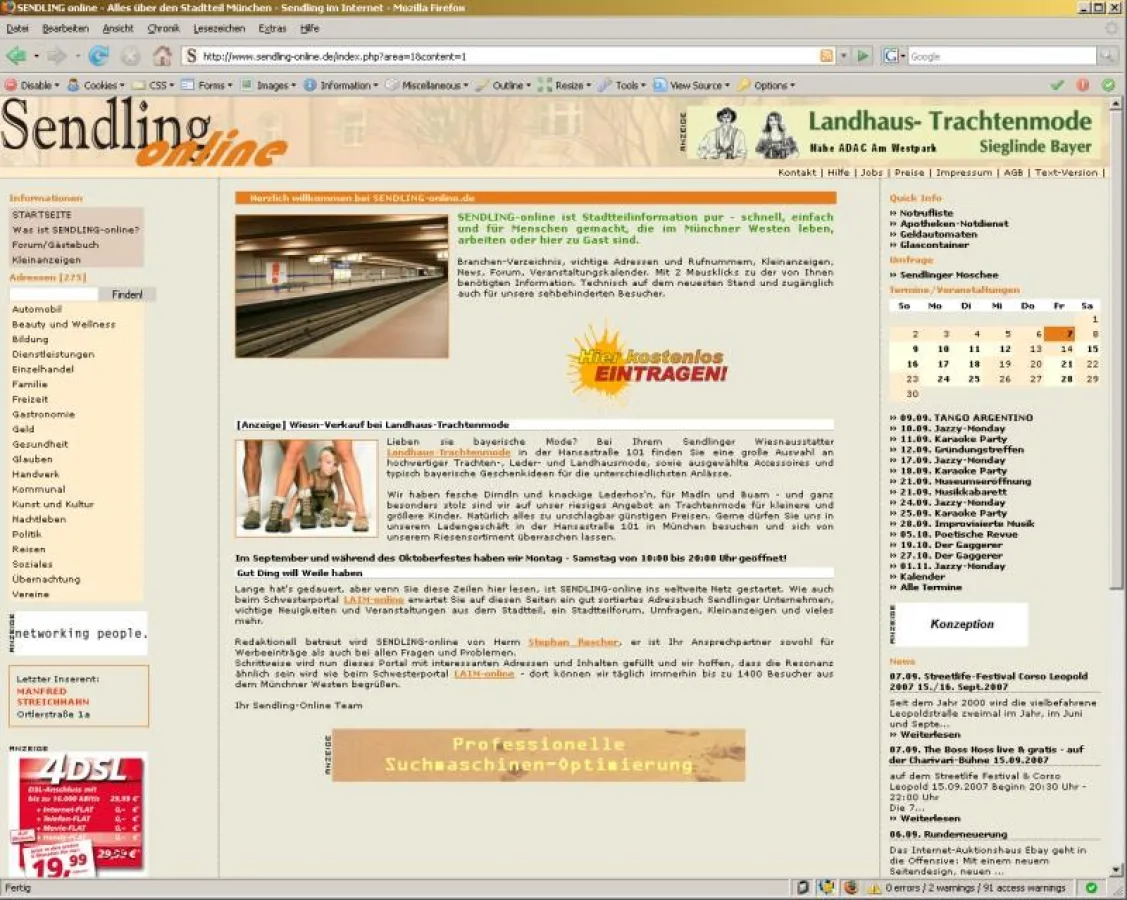 Unter www.laim-online.de und seit Anfang September auch unter www.sendling-online.de finden Besucher alle relevanten Informationen über den Stadtteil - schnell, einfach und für Menschen gemacht, die im Münchner Westen leben, arbeiten oder zu Gast sind. Das Portale beinhalten ein gut sortiertes und recherchiertes Branchen-Verzeichnis, wichtige Adressen und Rufnummern, einen Kleinanzeigenteil, News, Forum, wechselnde Umfragen zu stadtteilrelevanten Themen sowie einen aktuellen Veranstaltungskalender mit den wichtigen Events aus der Umgebung. Technisch auf dem neuesten Stand und zugänglich auch für sehbehinderte Besucher.