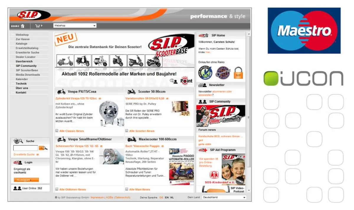 Die iucon GmbH hat erfolgreich die deutschlandweit erste Integration der Maestro Kartenzahlung in einen Onlineshop durchgeführt. In Zusammenarbeit mit der B&S Card-Service GmbH und dem europäischen Payment Service Provider Telekurs Card Solution GmbH wurde die SIP Scootershop GmbH, einen der größten Spezialanbieter für Motorrollerzubehör, an die neue Zahlungsart angeschlossen.