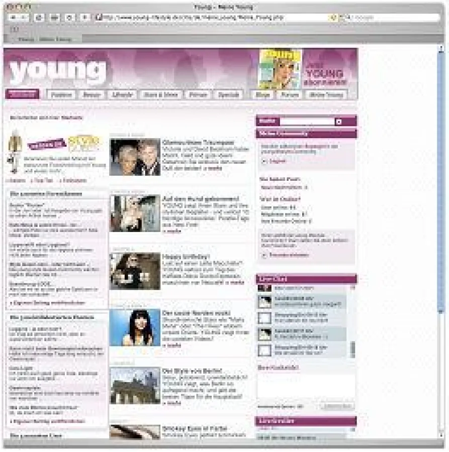 Wer seinen Stil bereits gefunden hat, kann sich mit eigener Foto-Galerie und seinem persönlichen Fashion-Bekenntnis als YOUNG-Style-Queen bewerben und von der Community wählen lassen. Jeden Monat ermittelt eine Fachjury unter den Top-Ten eine neue Siegerin, deren Trend-Look in der neuen, dreiseitigen Rubrik „my style" im Magazin YOUNG vorgestellt wird.