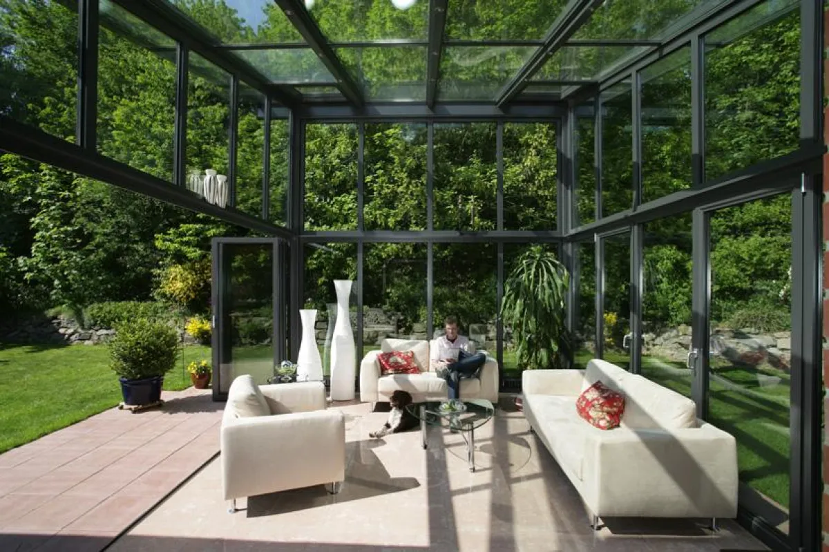 Seine großen Glasflächen schaffen lichte Transparenz, Leichtigkeit und Le-bendigkeit und machen den natürlichen Außenraum zu einem aktiven Be-standteil des individuell gestalteten Wohnumfeldes. Ein hoher Lichteinfall und eine effektive Sonnenenergieausbeute streicheln die Sinne, und auch bei Wind und Wetter sitzt man geborgen im Trockenen.