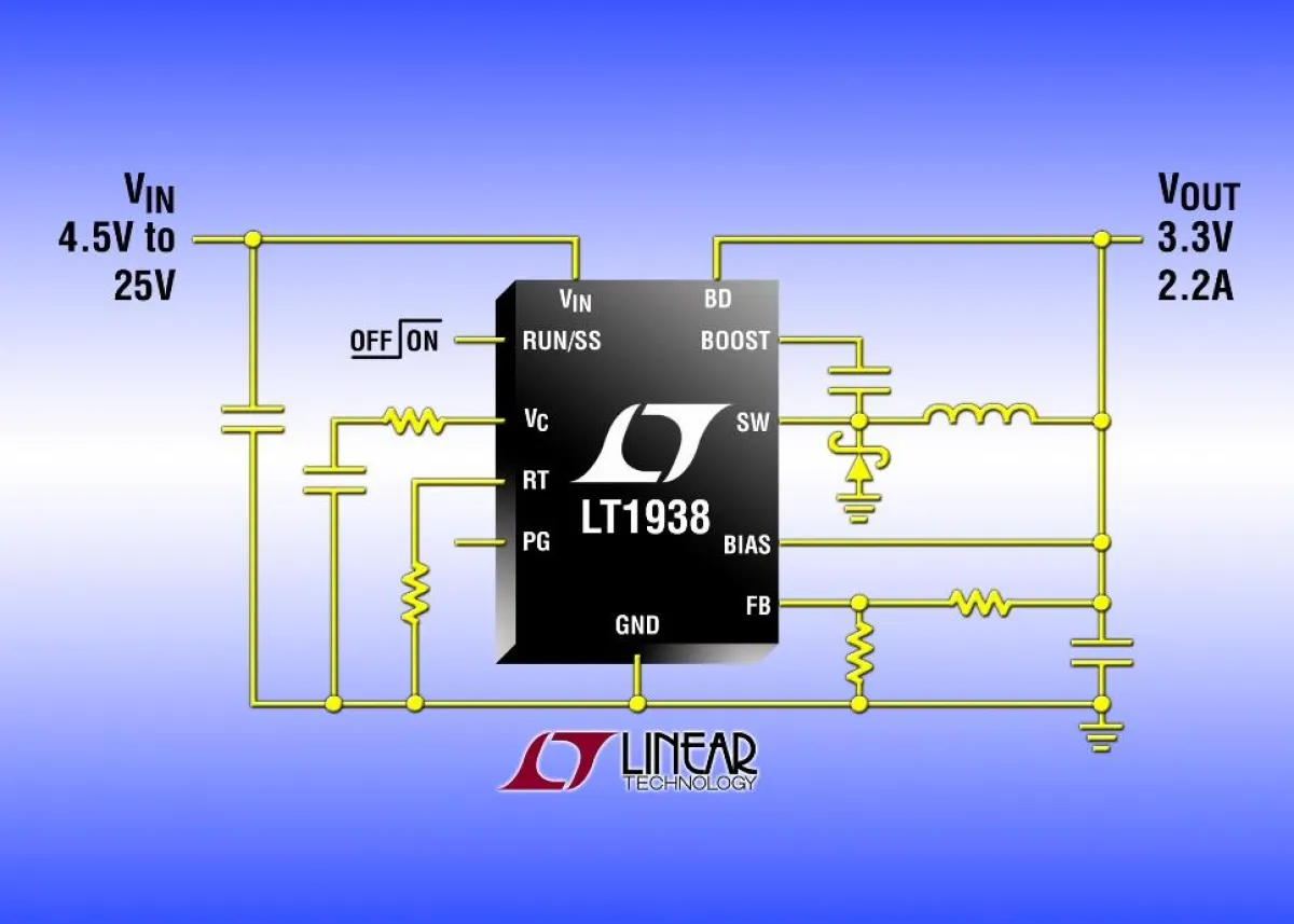 Der LT1938 vereint auf einem einzigen Chip einen wirkungsgradstarken 3,1A/0,18Ohm-Schalter, die notwendige Boost-Diode, einen Oszillator sowie die komplette Steuerungselektronik und Logik. Spezielle Design-Techniken ermöglichen einen hohen Wirkungsgrad über einen weiten Eingangsspannungsbereich, und die Current-Mode-Topologie sorgt für kurze Einschwingzeiten und hervorragende Regelschleifenstabilität. Der LT1938 bietet außerdem einen "Power Good"-Signalausgang und eine Soft-Start-Funktion.