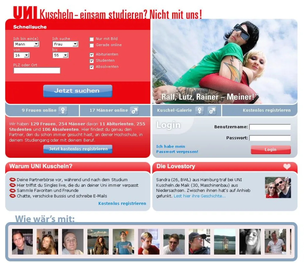 Mit "UNI Kuscheln" hat die Bremer Internet Agentur eWerk GmbH nicht bloß eine weitere Datingplattform im Internet geschaffen, sondern strebt die Marktführerschaft im Segment der Singlebörsen für die Zielgruppe der jungen angehenden Akademiker an.