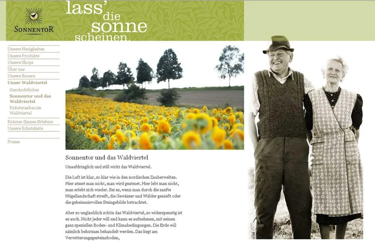 Kundenfreundlich, übersichtlich und im unvergleichlichen SONNENTOR-Design – das ist die neue Homepage der SONNENTOR Kräuterhandels GmbH aus dem österreichischen Waldviertel. Traditionelles Design vereint sich mit einfacher, übersichtlicher Navigation, die ein schnelleres Zurechtfinden auf der Internetseite garantiert. Neben der Information über das Unternehmen SONNENTOR stehen im neuen B2B-Bereich Wiederverkäufern und Vertriebspartnern Erstinformationen online zur Verfügung. Neu gestaltet wurde außerdem die Biofachgeschäfte-Suche, die es Usern ermöglicht, einfach und schnell herauszufinden, wo es in ihrer Umgebung die SONNENTOR-Produkte zu kaufen gibt. Händler, die noch nicht in der Liste aufgenommen sind, können sich über ein Online-Formular registrieren. Aber nicht nur die Suche nach Händlern wurde vereinfacht, SONNENTOR-Kunden haben nun ebenfalls die Möglichkeit, bei einer Online-Bestellung direkt mit Kreditkarte zu zahlen.