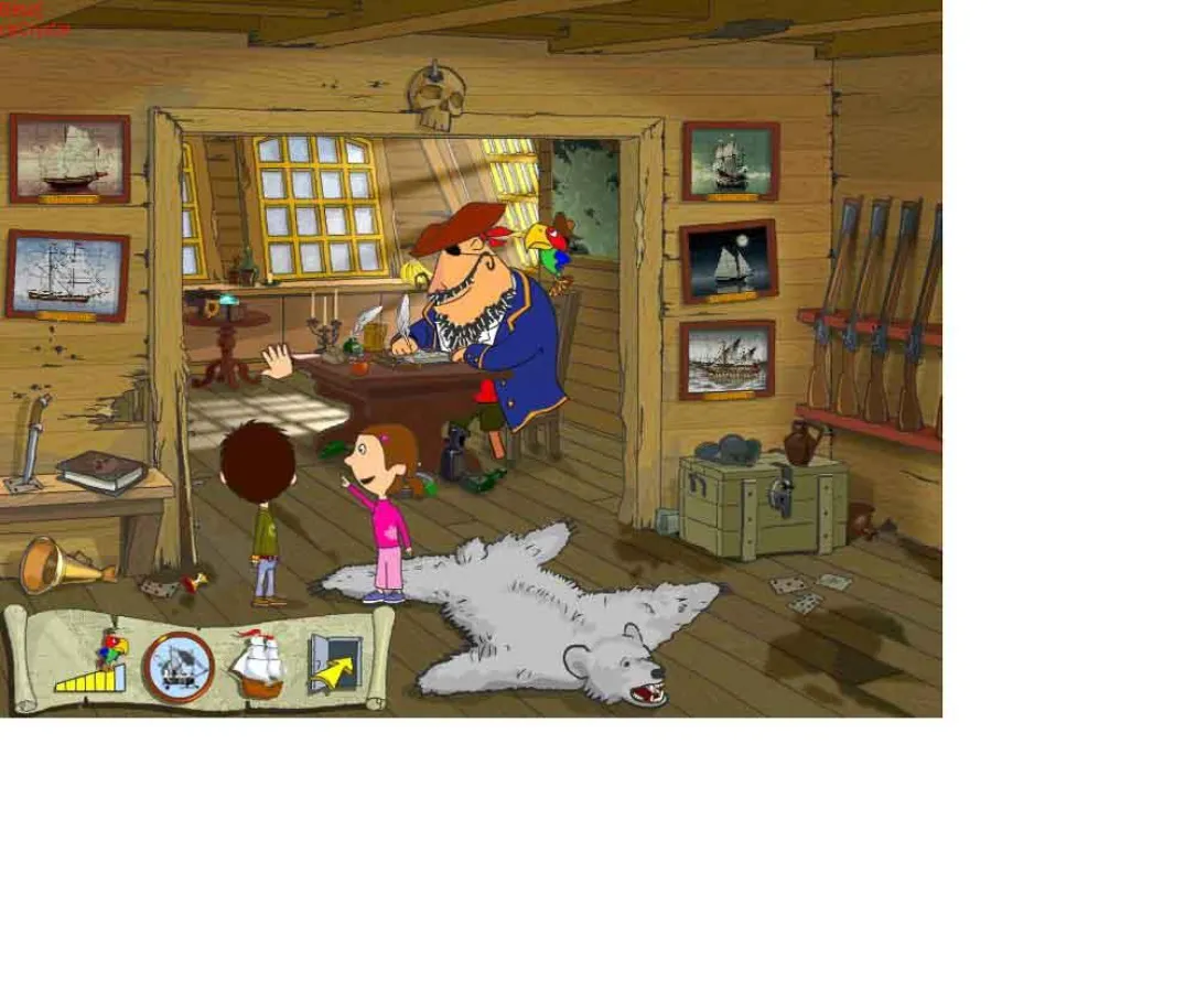 Der Spieler entscheidet nun, in welchen Teil des Schiffs es gehen soll. Dabei lernt er z.B., wo das Achterdeck und das Backdeck zu finden sind, dass die Schiffsküche Kombüse genannt wird und was ein blinder Passagier ist. Sein Wissen über Piraten und Seeräuber kann er gleich auf dem Achterdeck beim Steuermann Willi Windbeutel testen. Der hält ein kniffliges Piratenquiz bereit. Als Gewinn winkt der geklaute Rückspiegel, aber Vorsicht! Beantwortet der Spieler auch nur eine Frage falsch, ist das Quiz verloren und er muss noch einmal von vorn anfangen.