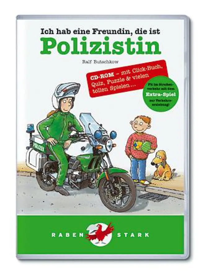 Neben der „Polizistin“ gibt es von Rabenstark.de auch „Ich hab einen Freund, der ist Feuerwehrmann“, „Lokführer“, „Tierärztin“, „Rennfahrer“ und „Fußballspieler“. Die sechs CD-ROM-Titel für PC und Mac basieren auf den gleichnamigen Kinderbüchern des bekannten Kinderbuch-Autors und Illustrators Ralf Butschkow, die im Hamburger Carlsen Verlag erschienen sind.